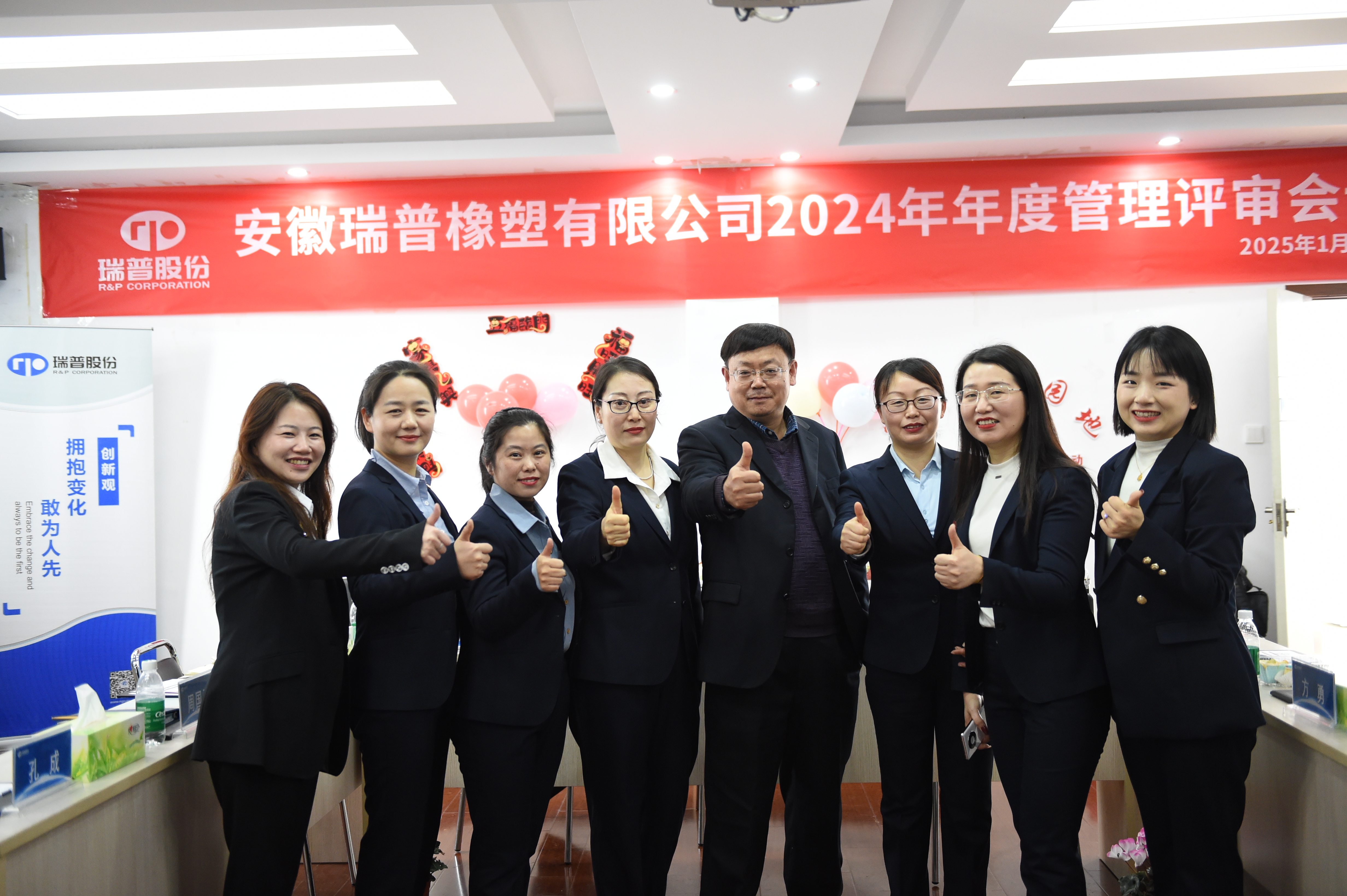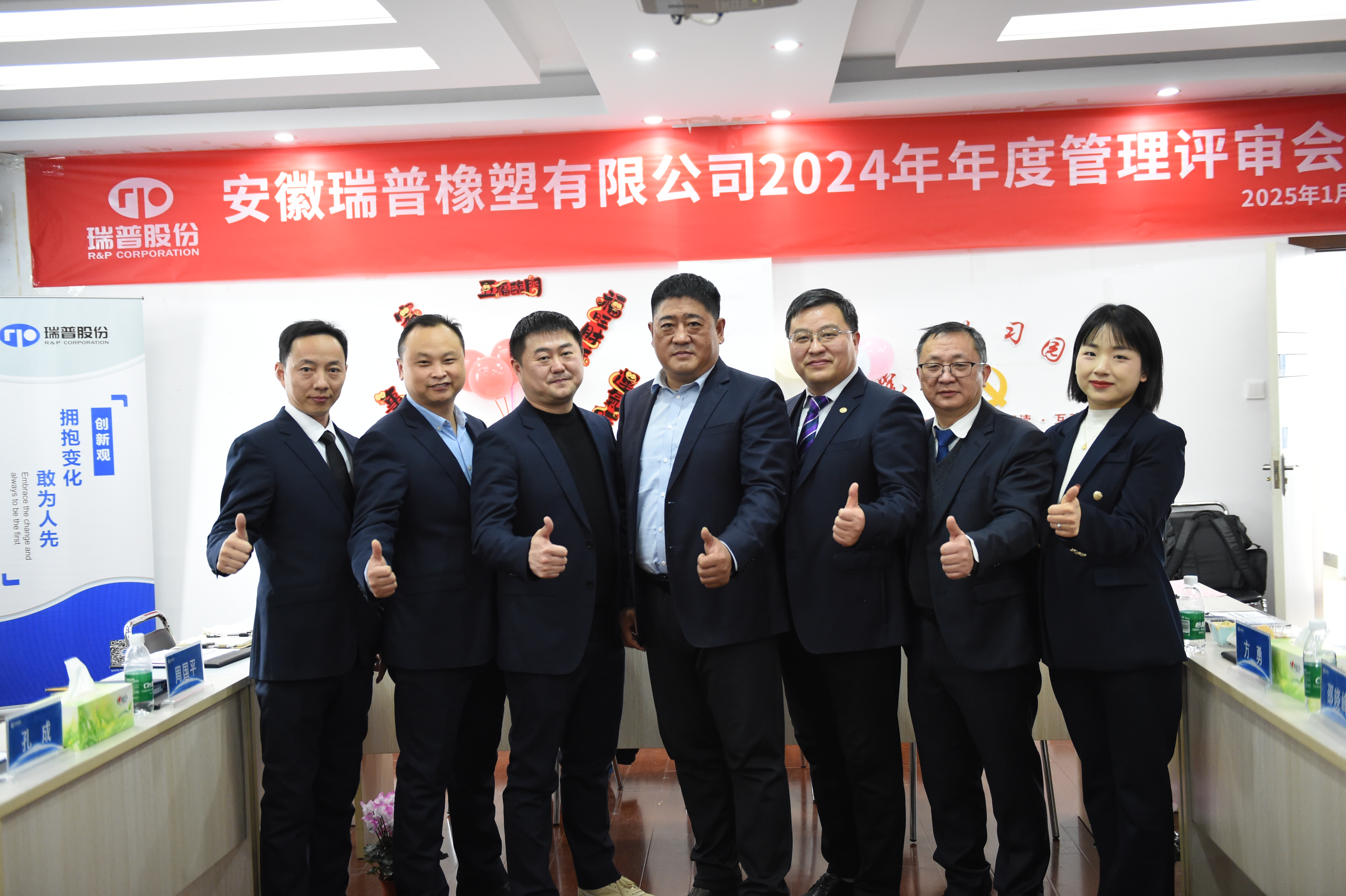 安徽瑞普橡塑有限公司于2025年1月24日上午8時,在寧國公司三樓會議室舉行2024年度管理評審會議。本次會議由集團公司質量部長祝珊珊擔任主持,公司高層管理人員以及各職能部門、子公司負責人共計三十余人出席會議。各職能部門、子公司負責人就2024年度的工作情況進行匯報,并對2025年的工作計劃及提升策略進行規劃。