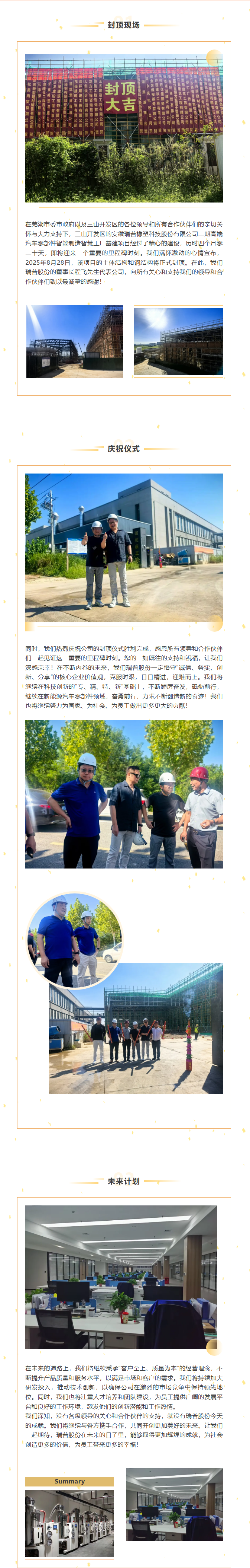28/2025-08熱烈慶祝瑞普股份蕪湖總部二期智能制造智慧工廠封頂大吉了解詳情